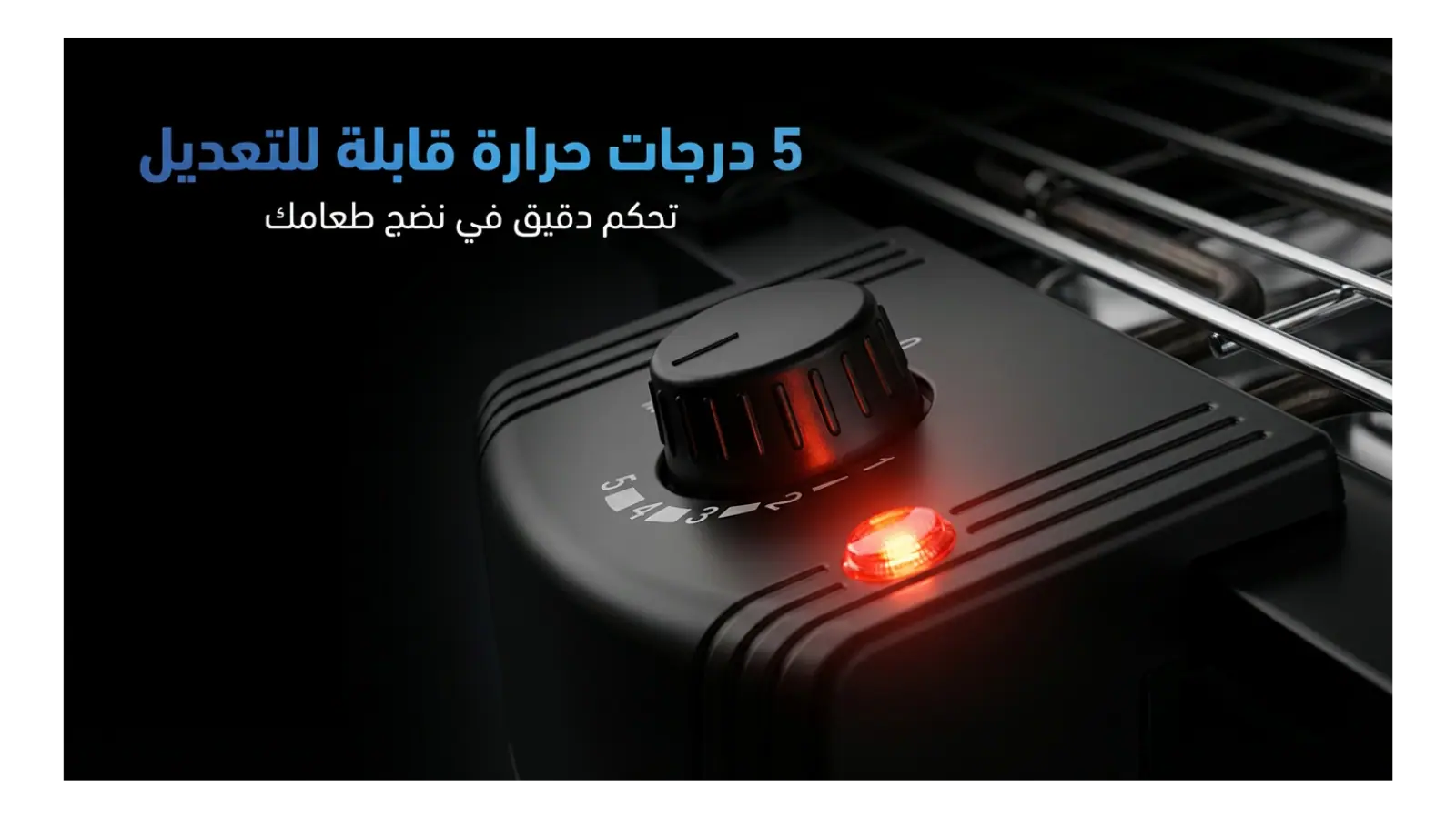 ✅ 5 مستويات حرارة تمنحك حرية التحكم الكامل من شواء خفيف إلى نضج كامل حسب رغبتك.